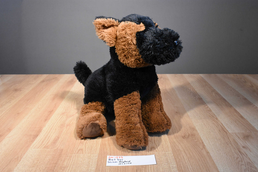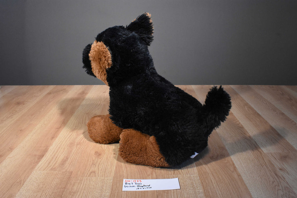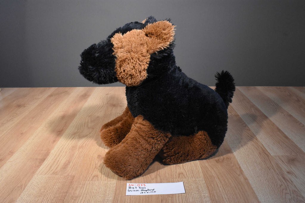 A fluffy black and brown Big T Toys German Shepherd.