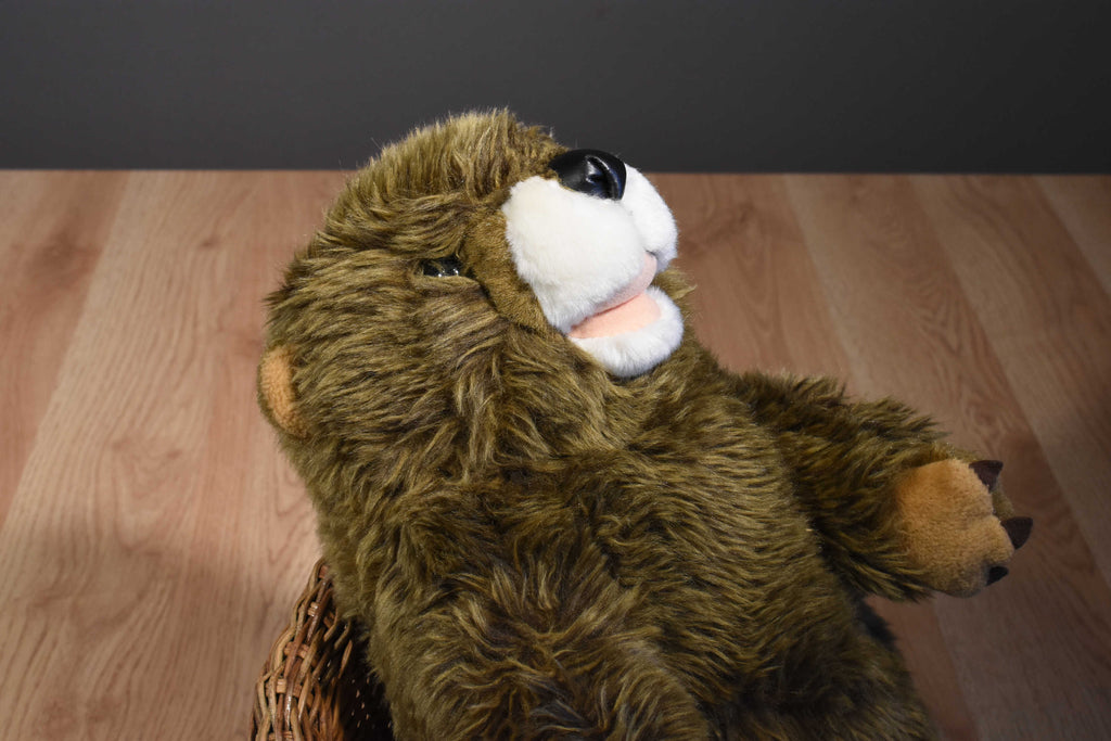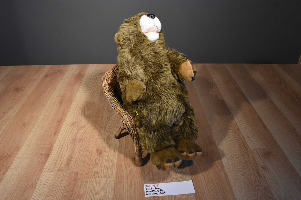 A brown and white Build A Bear groundhog named Punxsutawney Phil.
