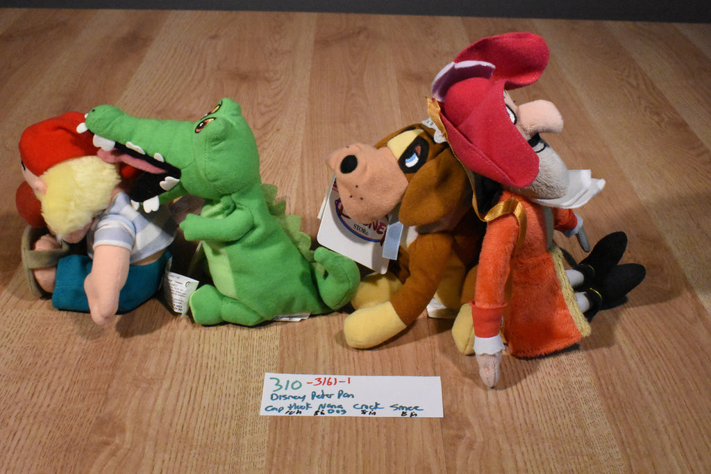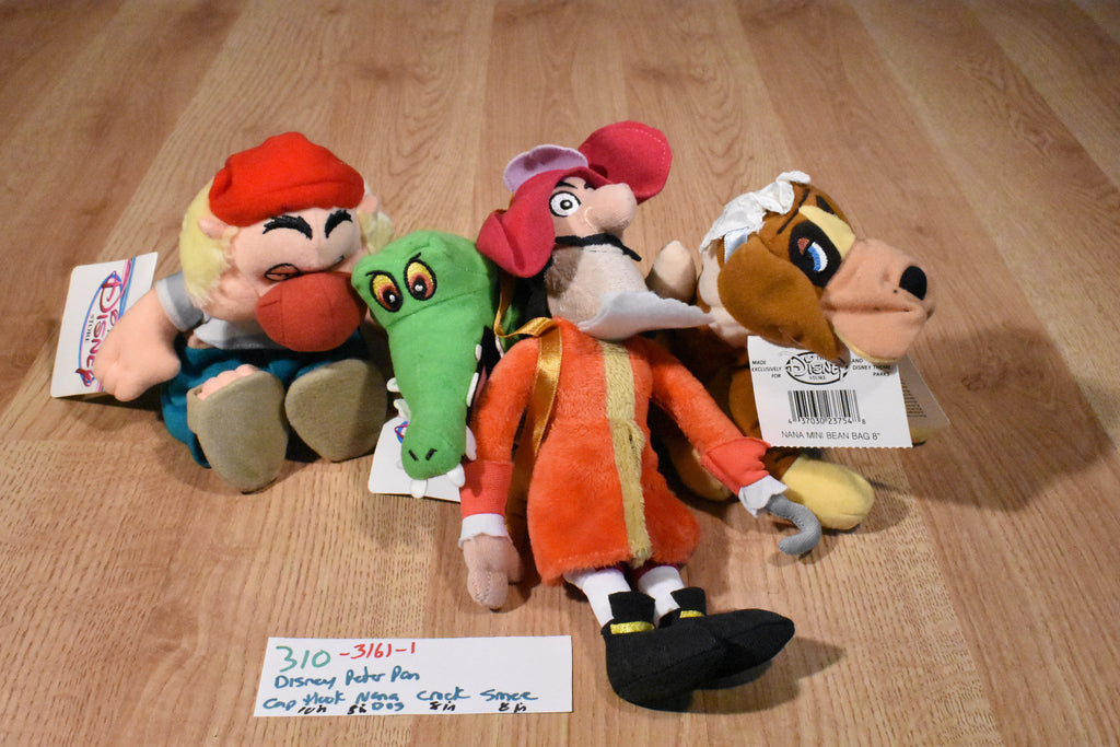 Four Disney Peter Pan Characters. Smee, Captain Hook, Nana and Tic Toc Croc.