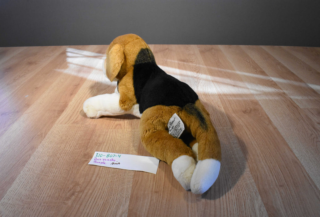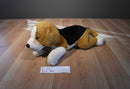 A laying brown, white, and black Yomiko beagle puppy beanbag plush.