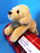 A laying yellow Yomiko Labrador puppy beanbag plush.