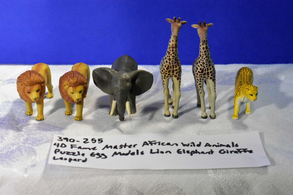 Six 4D Fame Master African animal puzzles. Two Lions, two Giraffes, an elephant and a Cheetah