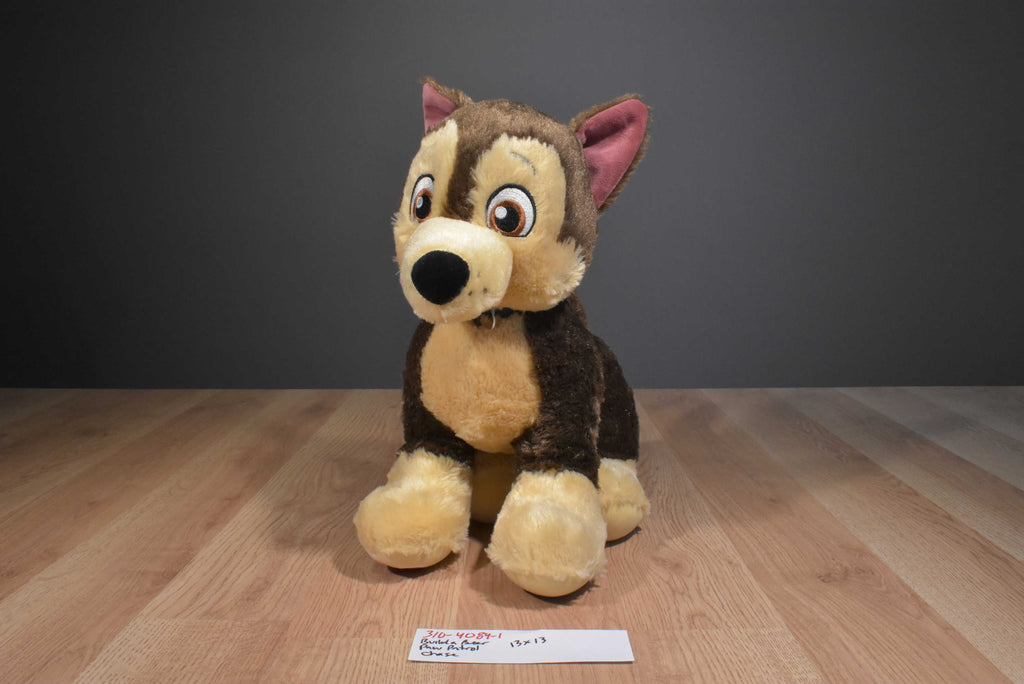 An brown and tan Build A Bear Paw patrol German Shepherd dog named Chase.