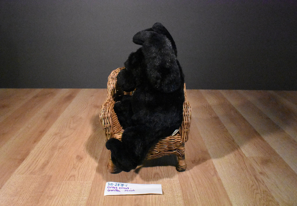 A black Circus Circus gorilla holding his arms up in a swinging pose.