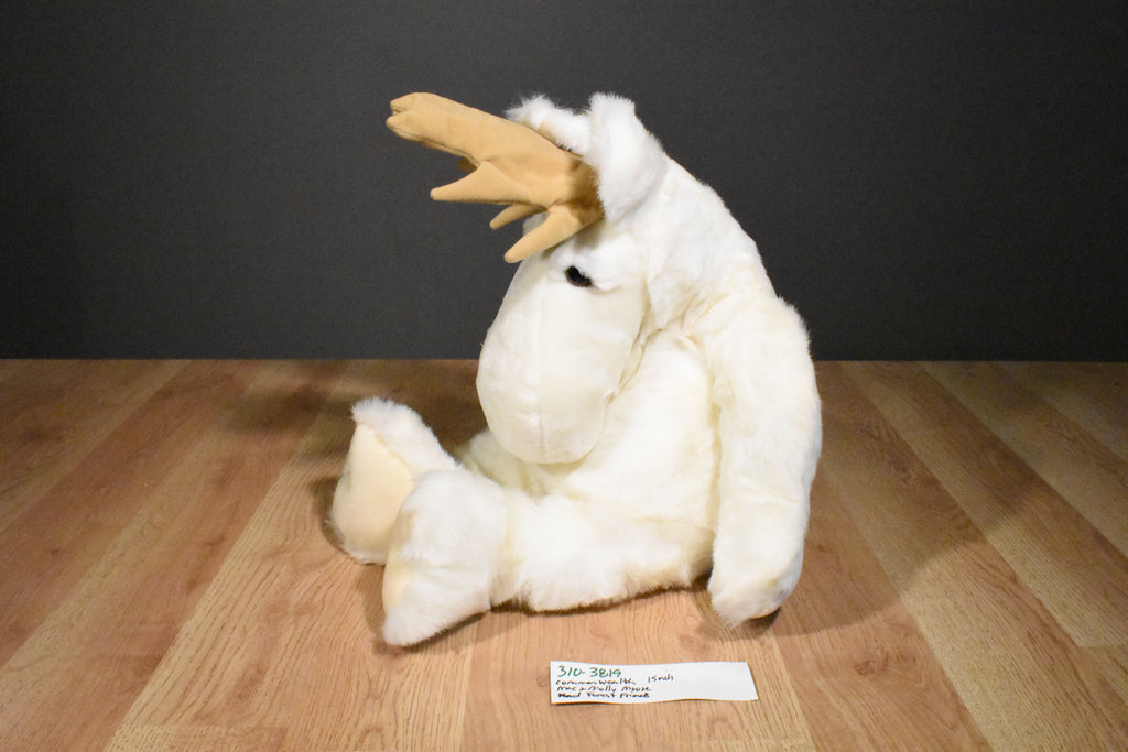 A white Commonwealth moose with tan bendable antlers named Molly. She is from a collection called Mac & Molly and Their Forest Friends.