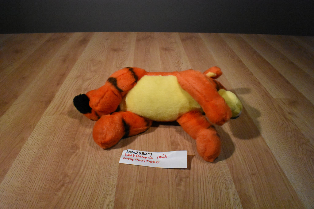 A laying orange and black striped Disney Winnie the Pooh Tigger tiger.