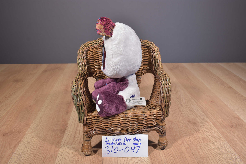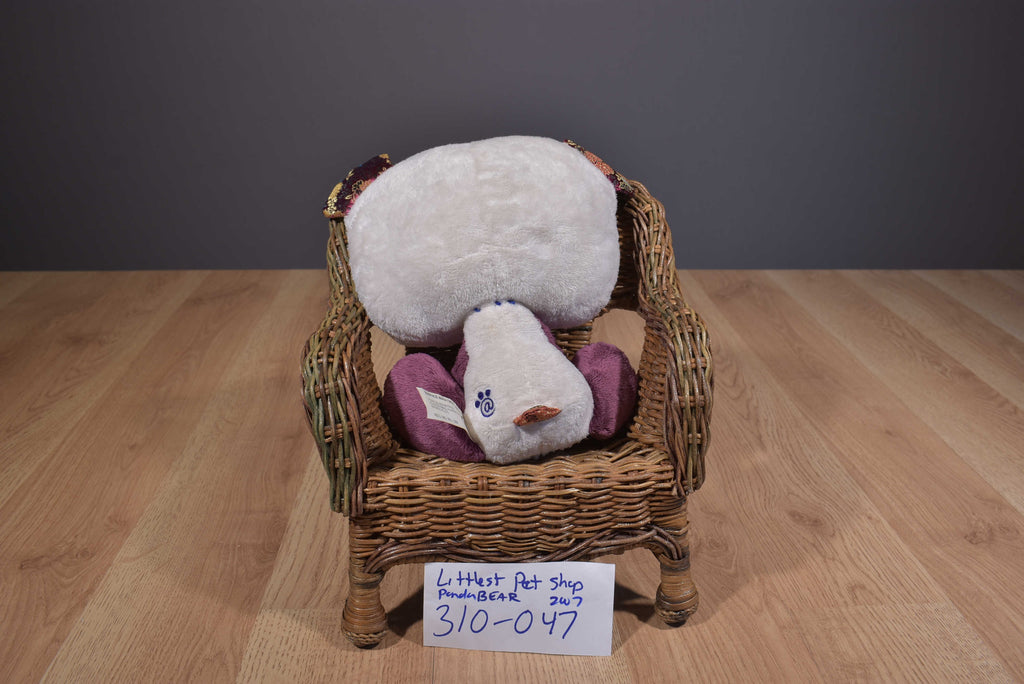 A sitting white and purple Hasbro Littlest Pet Shop panda bear.