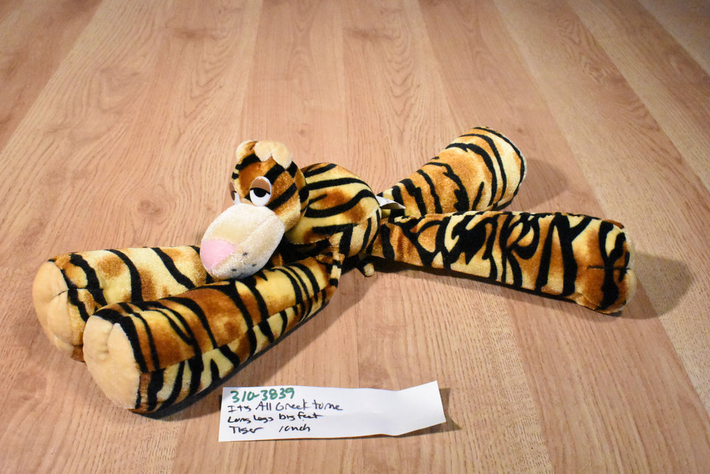 An orange and black striped, big footed It's All Greek to Me tiger.