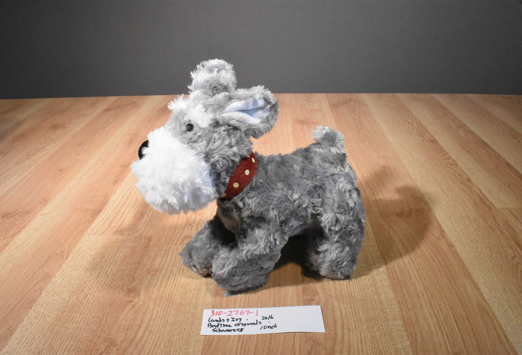 A grey and white Lambs & Ivy Schnauzer puppy dog..