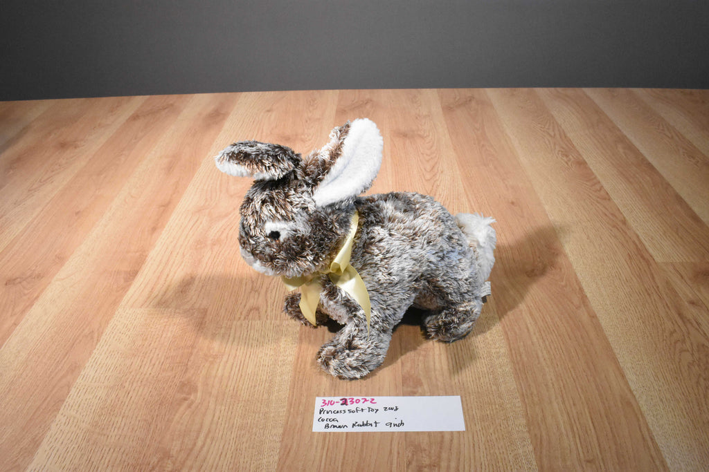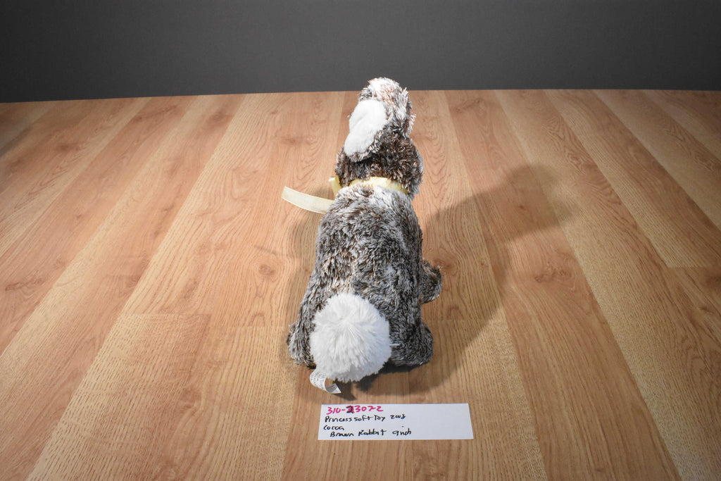 Princess Soft "Cocoa" Brown and White Bunny Rabbit 2008 Beanbag Plush Wearing a Yellow Bow