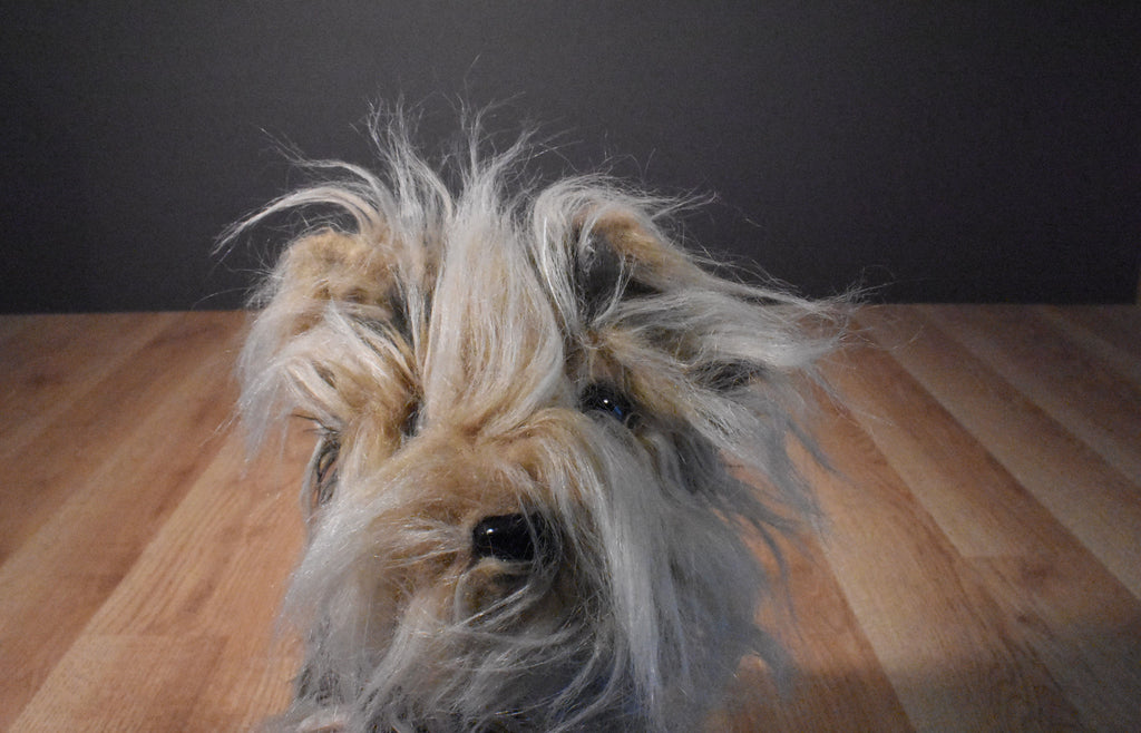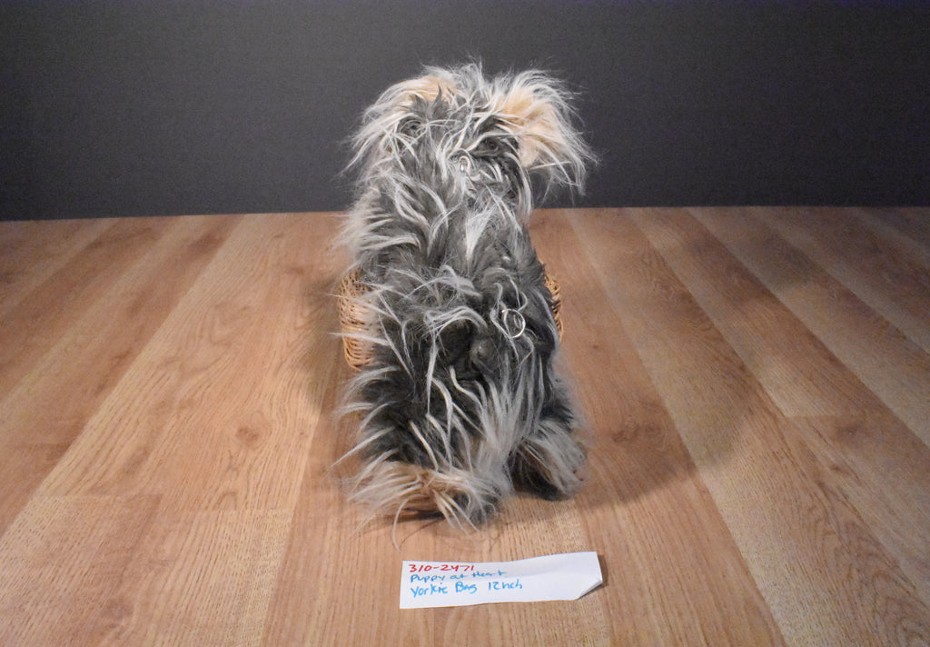 A shaggy grey and beige Puppy at Heart Yorkshire terrier or Yorkie puppy purse.