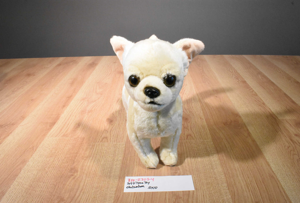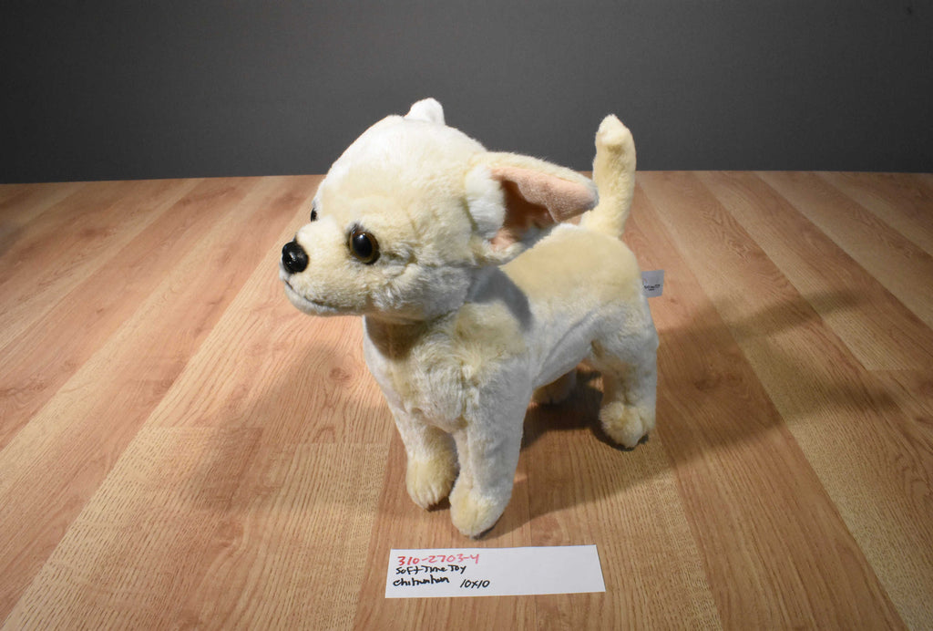 A standing beige Soft Time Toy Chihuahua puppy dog.